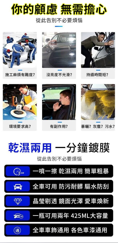 11分鐘前速效汽車鍍膜劑,去污+鍍膜,3分鐘養護漆面光亮如新,所有車色可用!鍍膜防護一瓶搞定!限時折扣 ! - 【特惠五入組】NT$1298