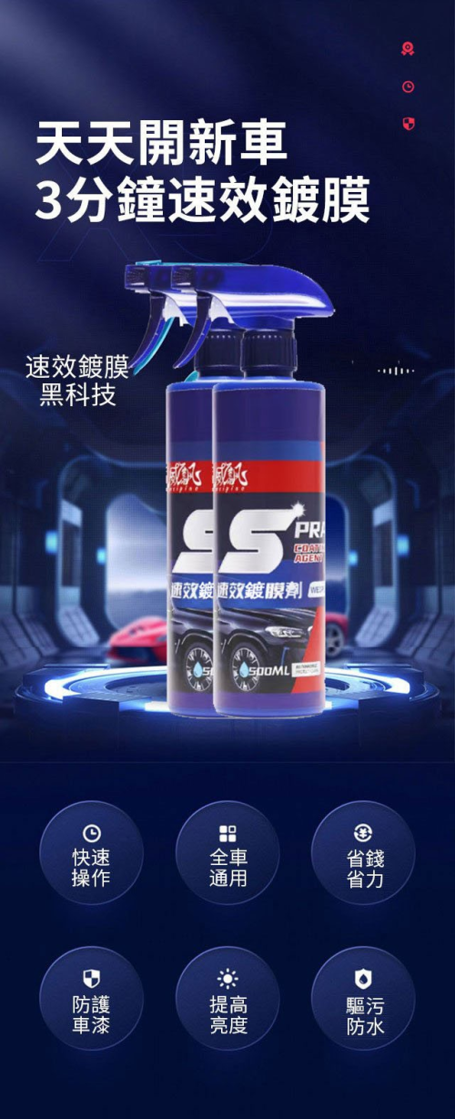 4分鐘前速效汽車鍍膜劑,去污+鍍膜,3分鐘養護漆面光亮如新,所有車色可用!鍍膜防護一瓶搞定!限時折扣 ! - 【特惠五入組】NT$1298