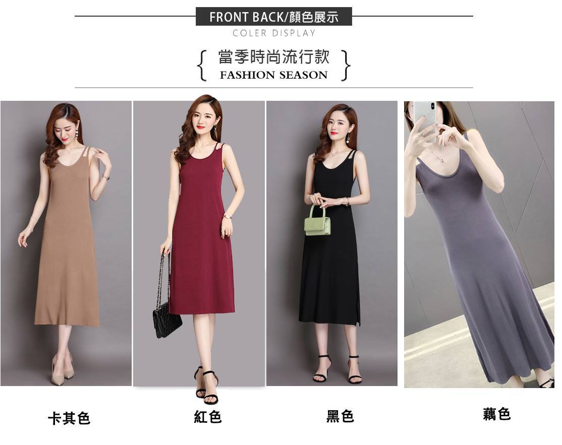 4分鐘前 吊帶連衣裙~長裙女生內搭外穿修身顯瘦裙子~ - 【特價折扣】C2C 秋季新款吊帶連衣裙 4入組 NT$1298