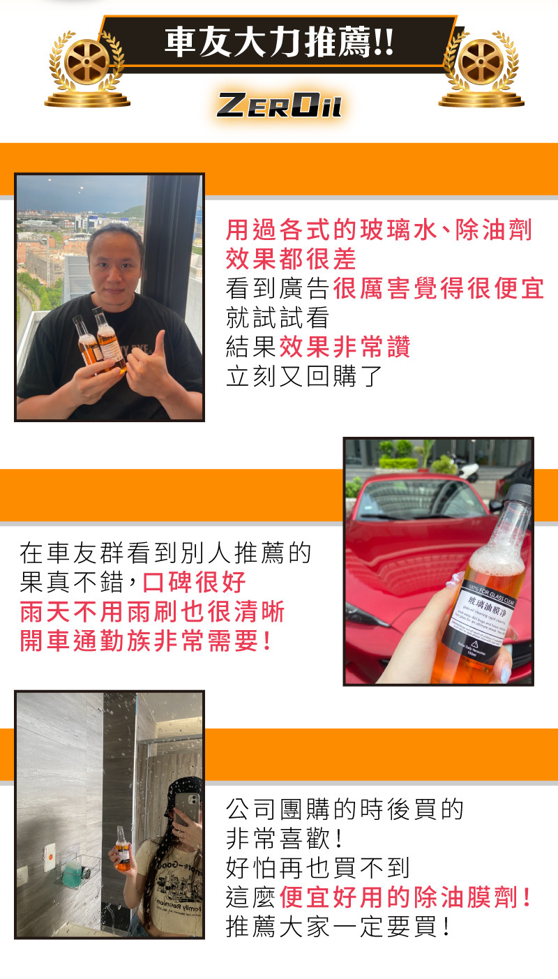 4分鐘前ZEROil零油膜玻璃淨視線不清晰行車不安全一罐輕鬆去油膜 - 【團購組】買6送6 / 贈清潔用品*3