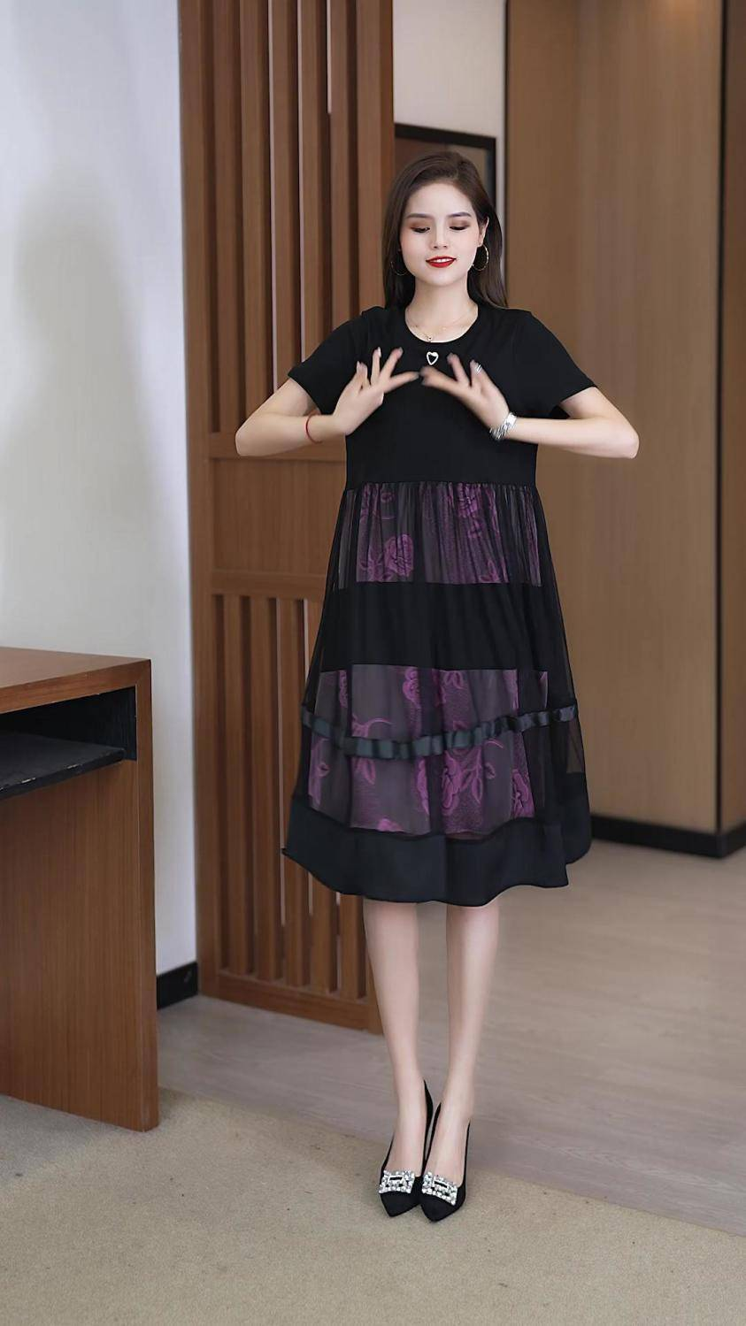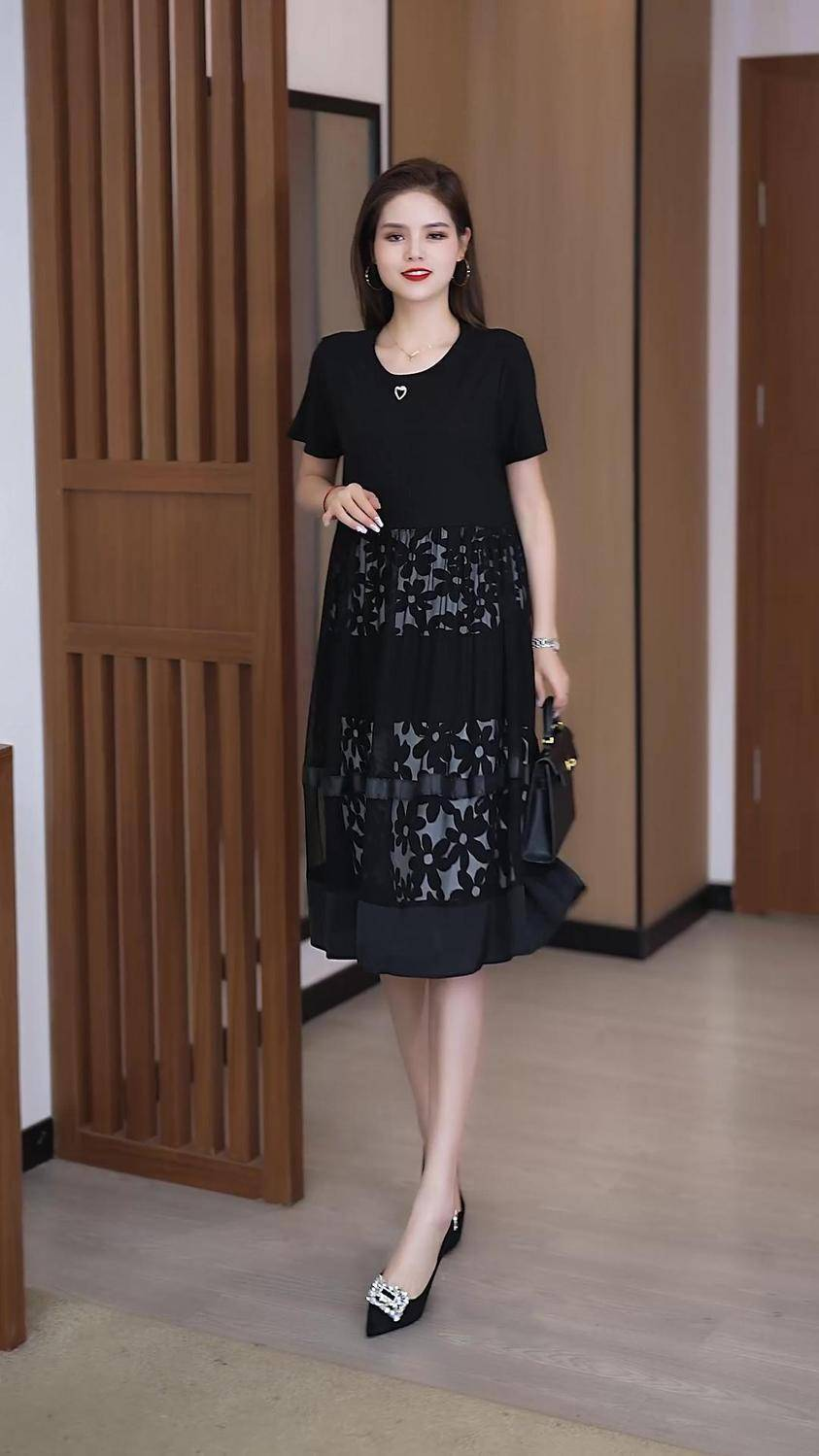 20分鐘前2025夏季新款時尚假兩件寬鬆遮肚網紗連衣裙 - 【尊享三入】僅需NT$1298(均價NT$432)
