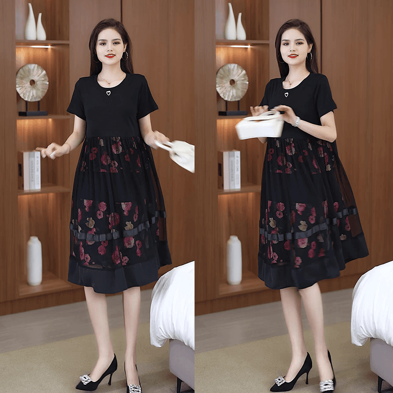 5分鐘前2025夏季新款時尚假兩件寬鬆遮肚網紗連衣裙 - 【尊享三入】僅需NT$1298(均價NT$432)
